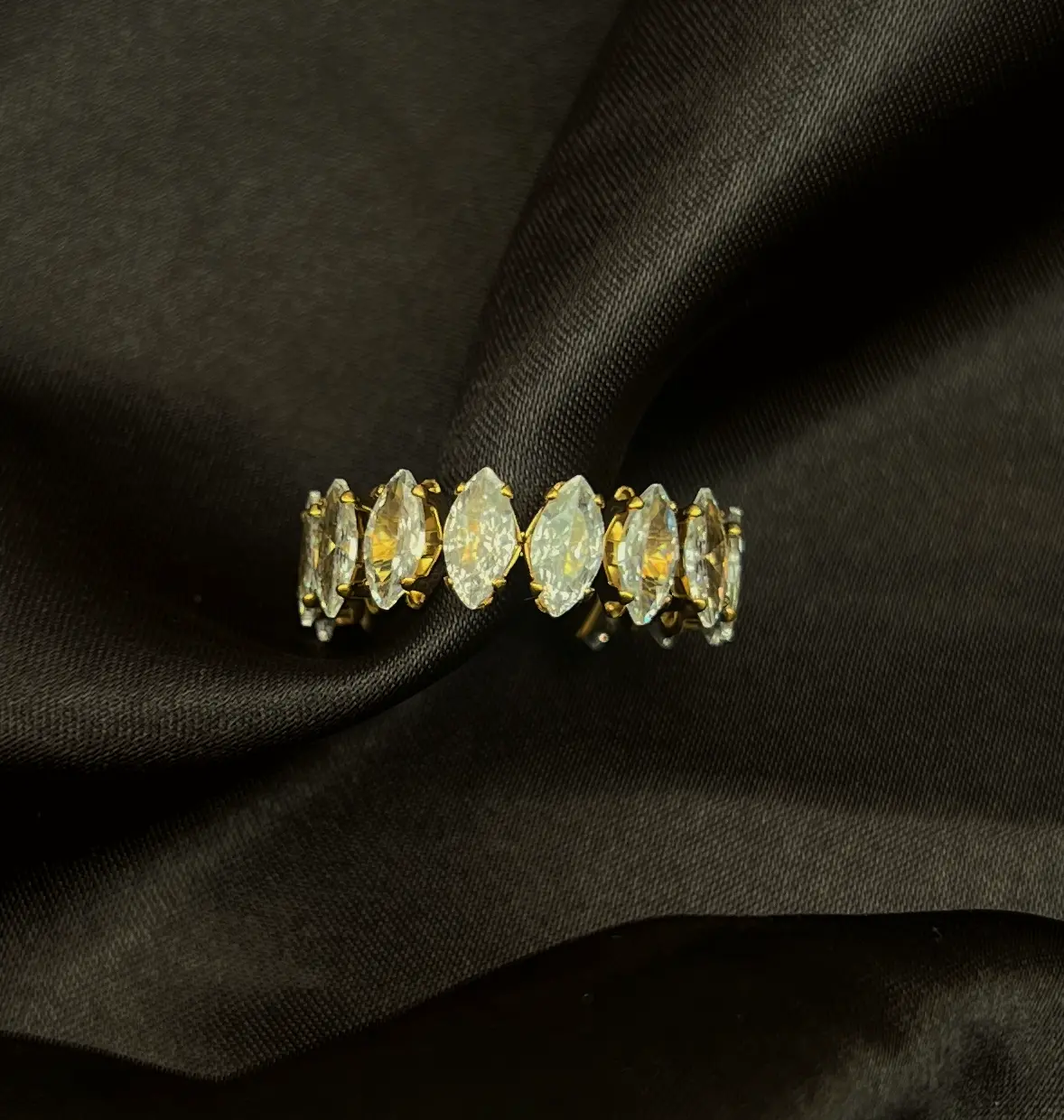 Inspired by the symbolic laurel wreath, this ring represents victory, beauty, and grace. The sparkling leaf-like crystals wrap delicately around the band, offering a refined statement that transitions effortlessly from daytime chic to evening glamour.