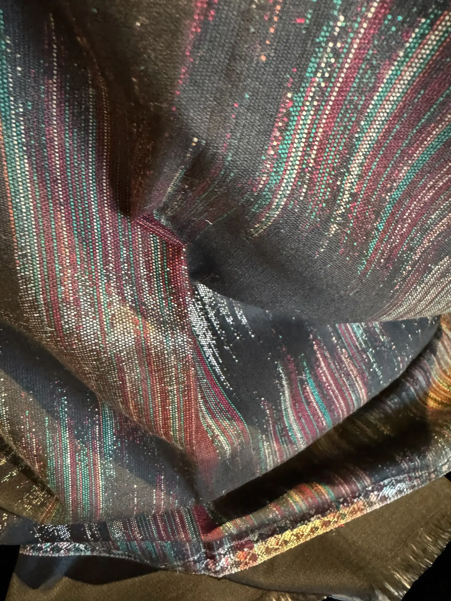 The subtle play of colors adds depth and sophistication, making it a versatile accessory for both festive occasions and chic evening wear.