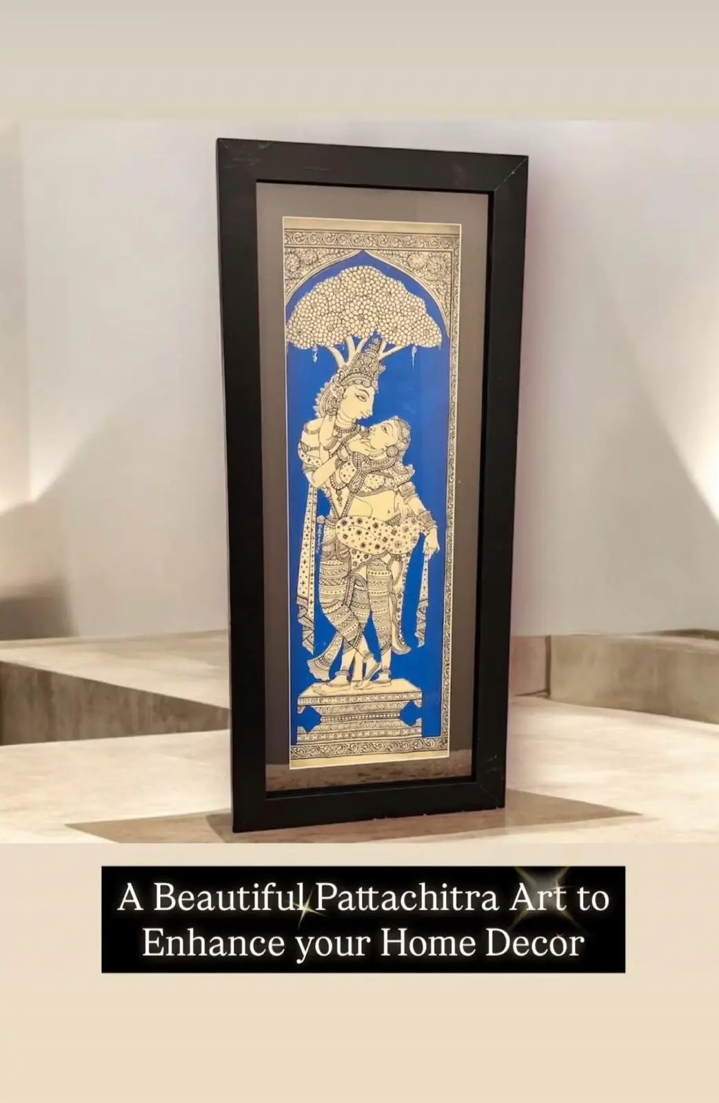 The deep indigo palette lends a serene and mystical aura to the scene, while the intricate detailing, fine linework, and floral motifs reflect the unmatched artistry of the Pattachitra tradition. Every brushstroke captures the emotions, grace, and spiritual energy that define this legendary love story.