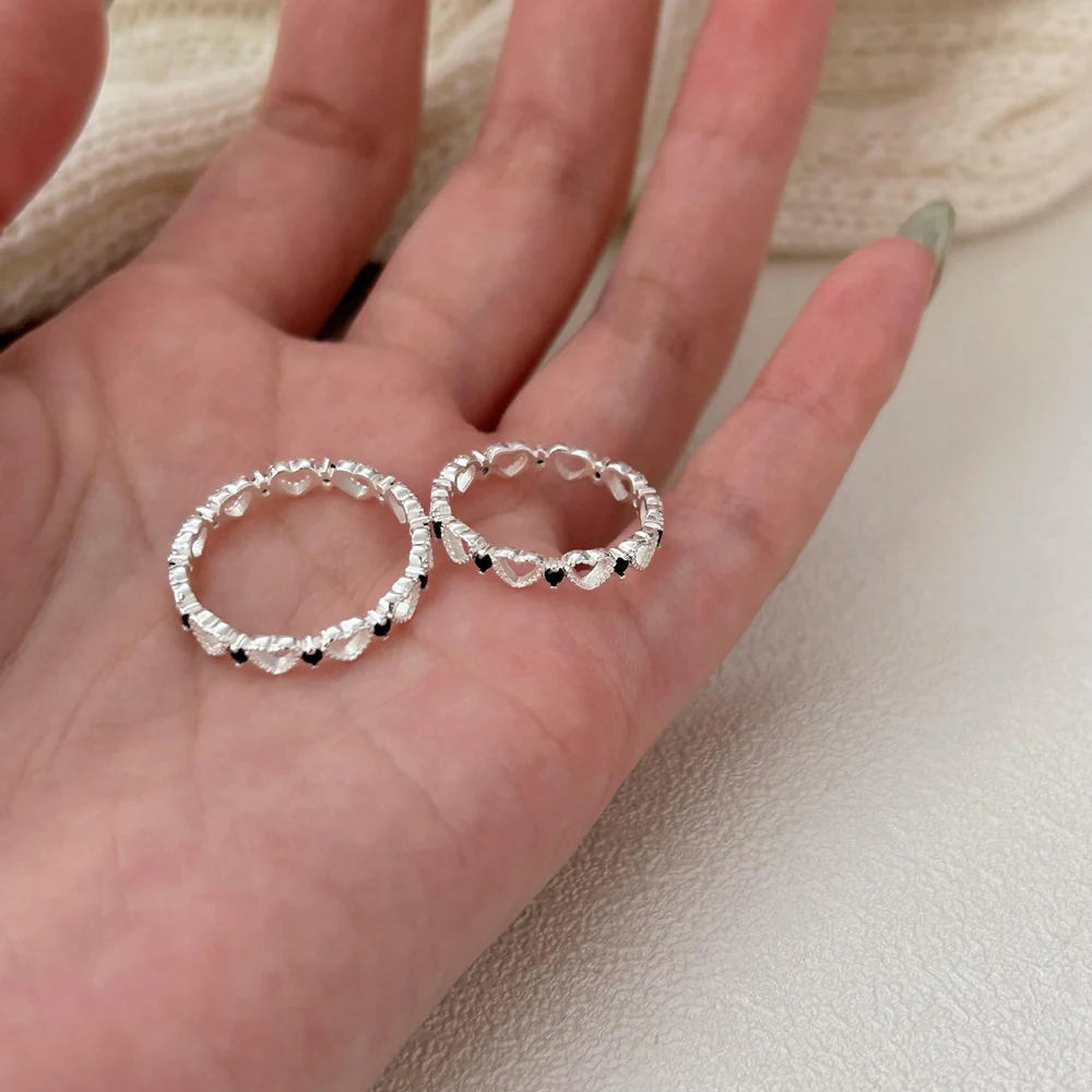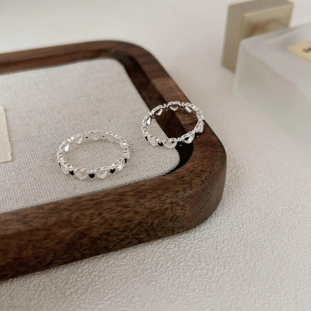 925 Sterling Silver Women Korean Heart Silver Rings