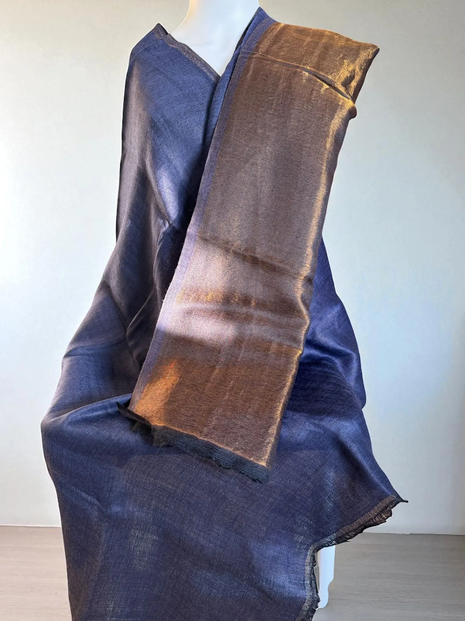 Featuring a striking contrast of midnight blue and antique gold, this versatile piece lets you style it in two elegant ways.