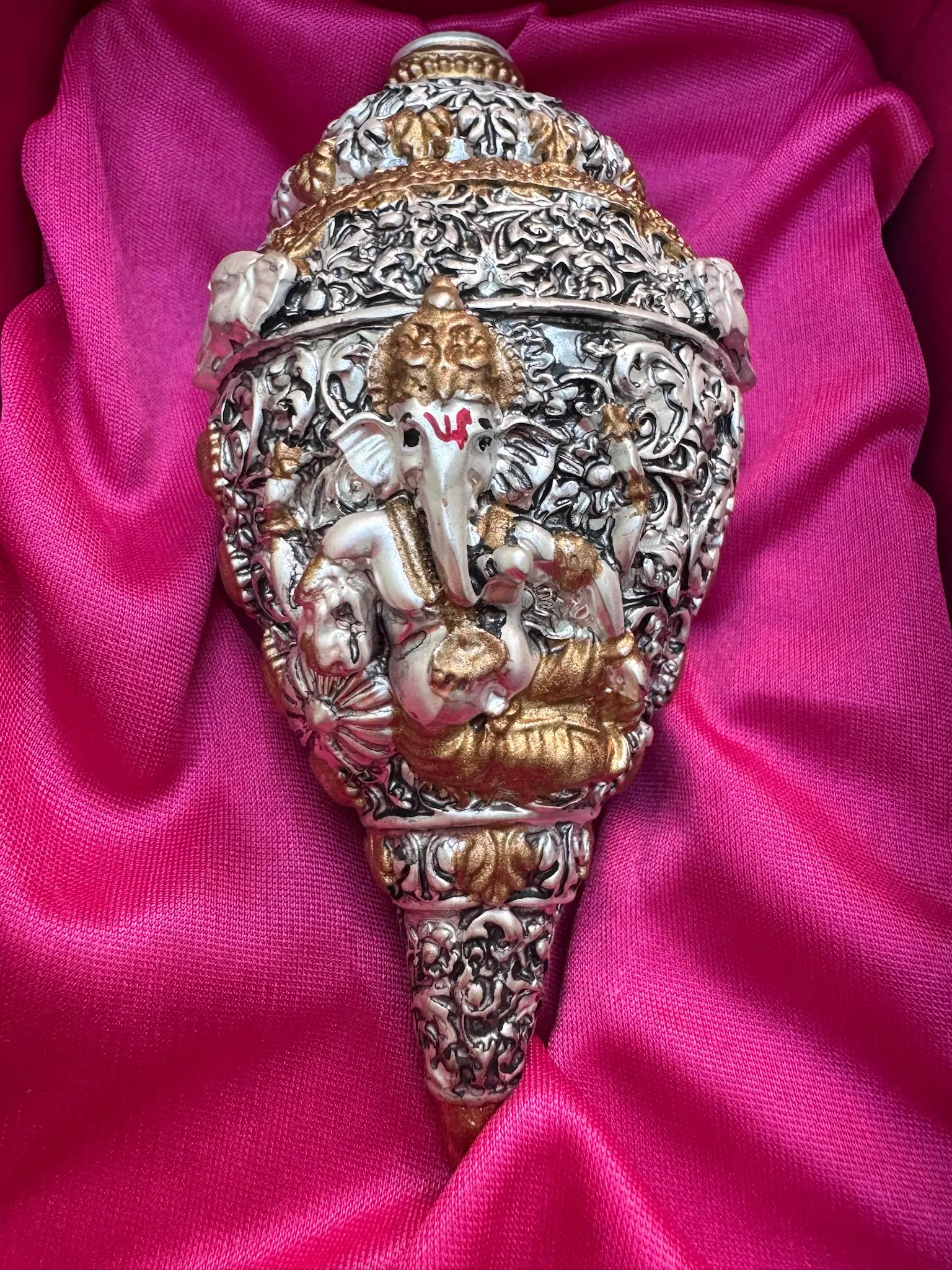 Whether used in worship, placed as a sacred decor item, or gifted to loved ones, this Silver-Finished Ganesha Conch brings blessings and beauty?into?any?space